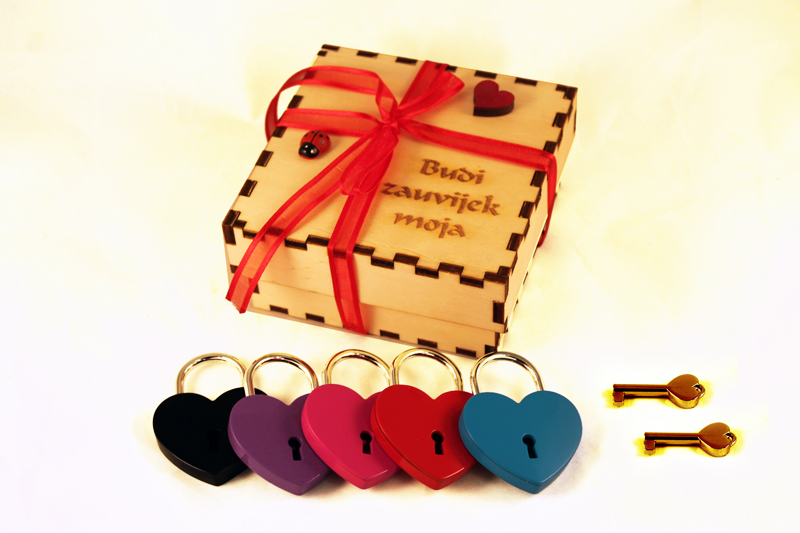 - Drvena kutija (drvo topola) u koju ide lokot izgravirana s tekstom po želji