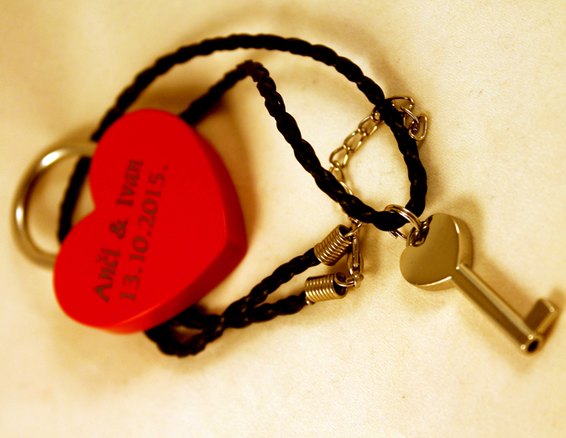 - Lokot u obliku srca izgraviran s Vašim imenima i datumom